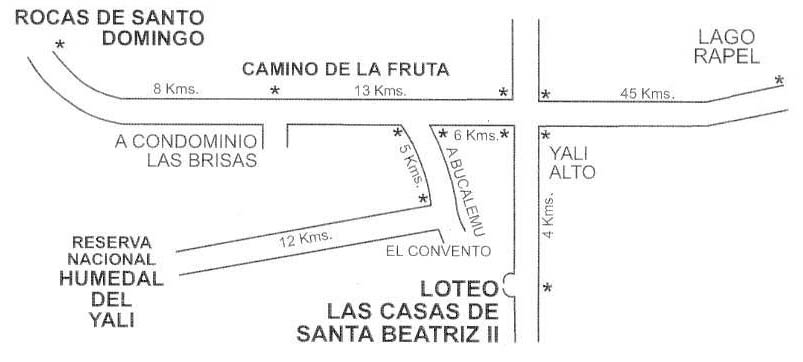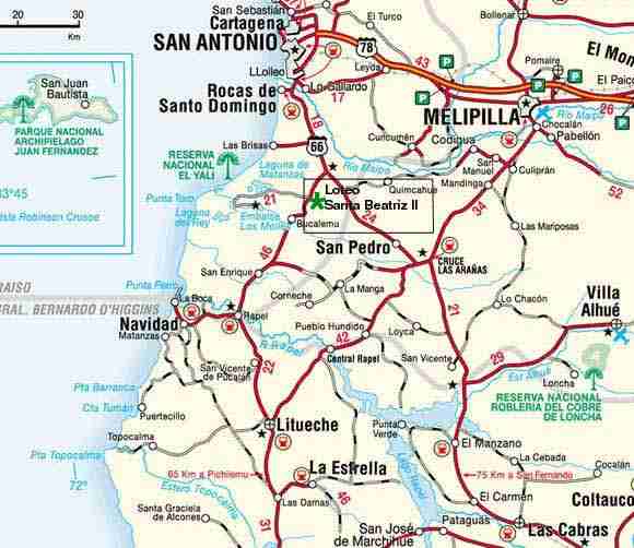 a 45 Km por el mismo camino se encuentra el lago Rapel, y a 23 Km se encuentra